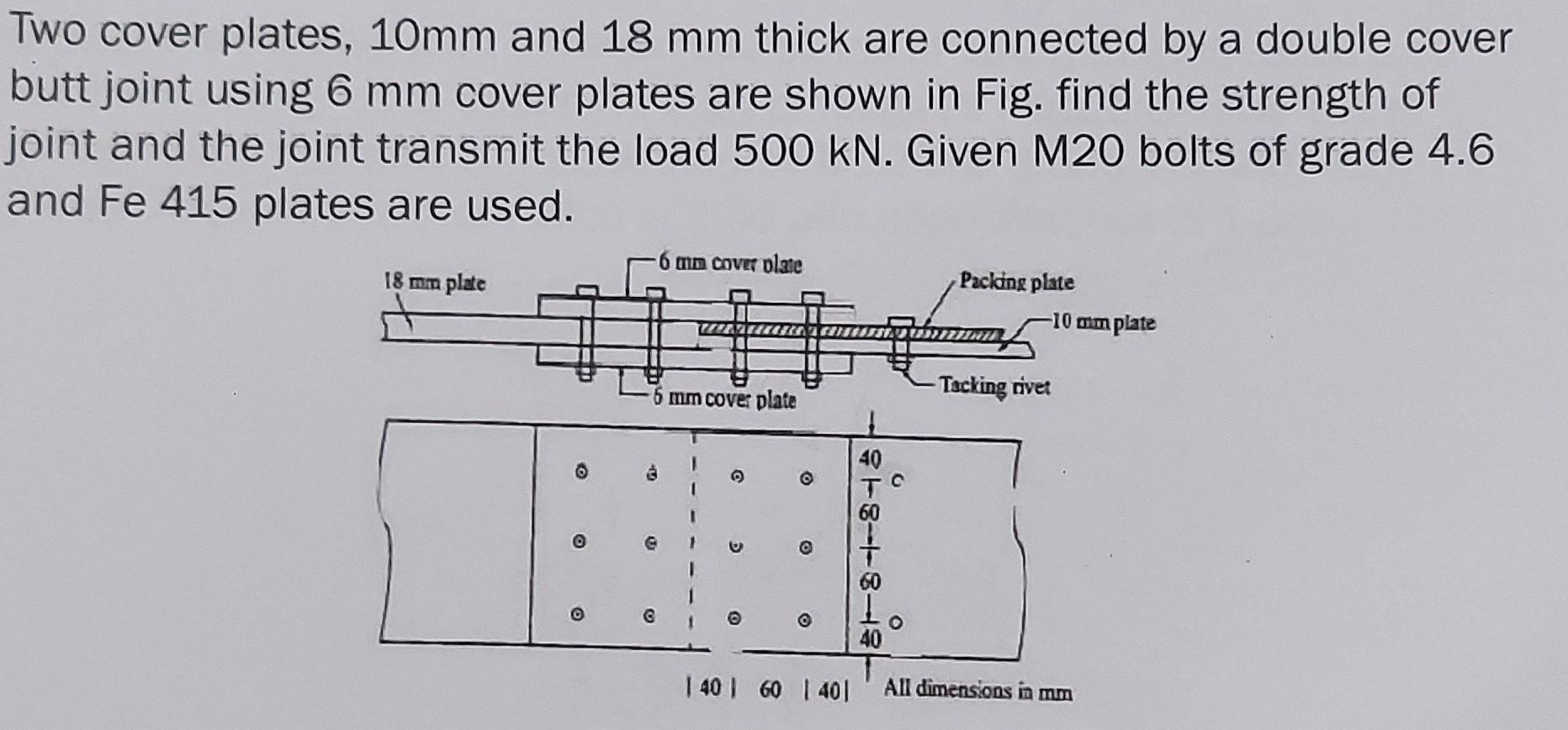 Solved Two cover plates, 10mm and 18 mm thick are connected