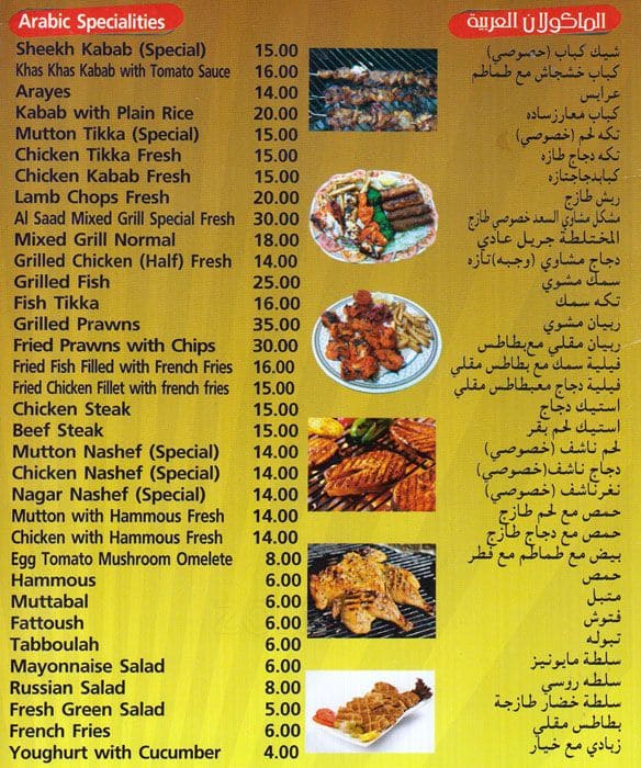 Menu at AlSaad Restaurant, Ras AlKhaimah