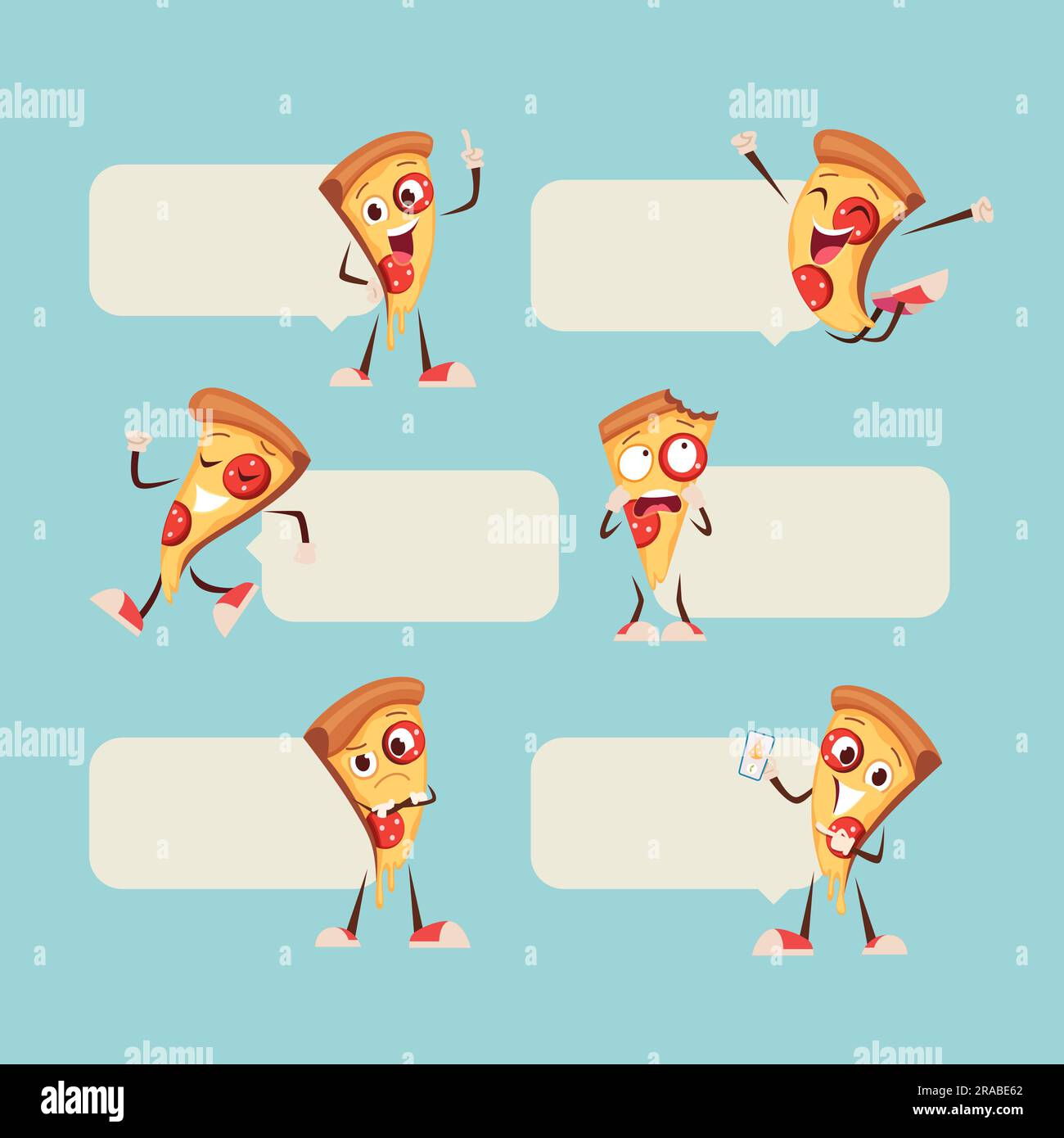Pizza characters. sliced pizza mascot with funny faces standing near