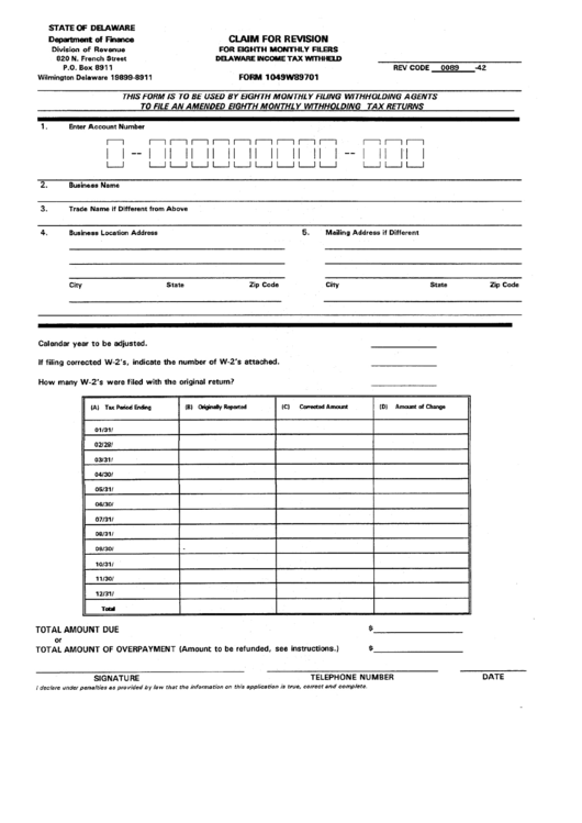Form 1049w89701 Claim For Revision For Eight Monthly Filers Delaware