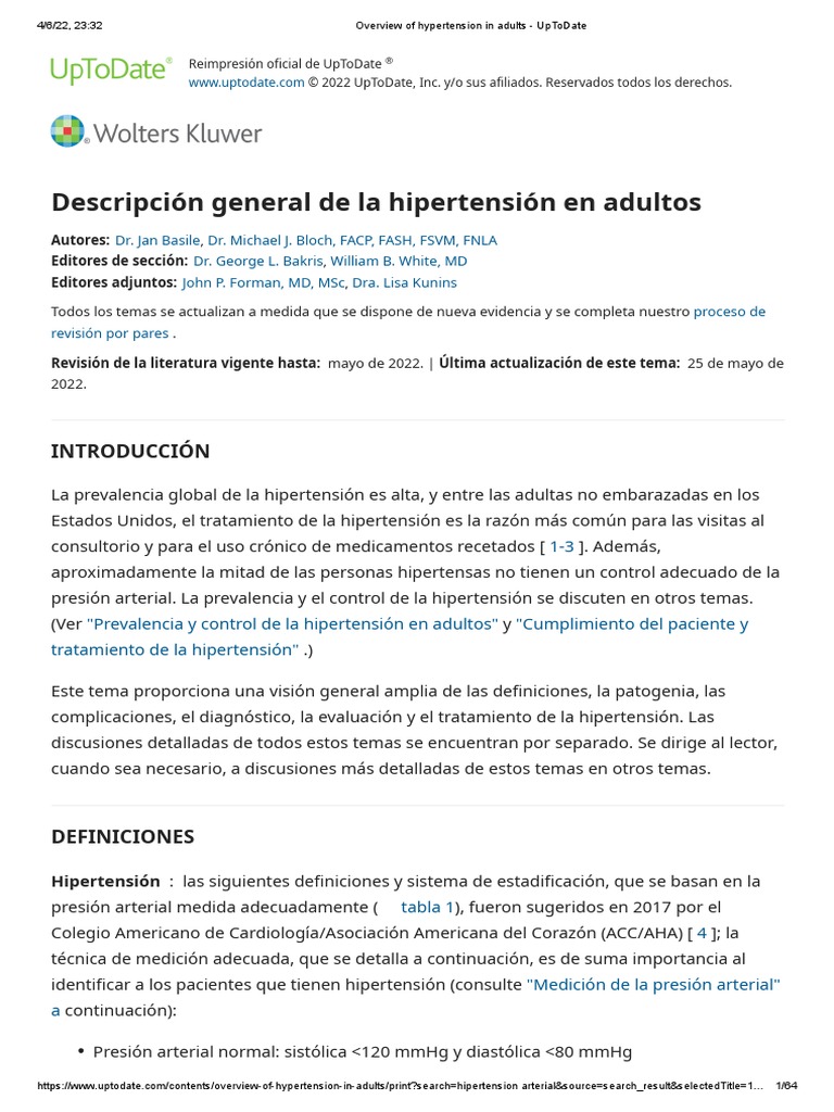 Overview of Hypertension in Adults UpToDate PDF