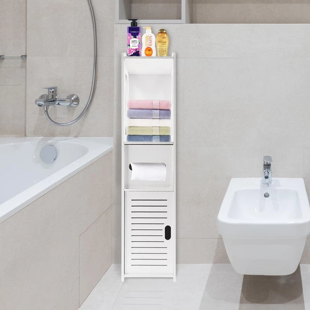 WHITE WOOD FREE Standing Toilet Paper Roll Holder Bathroom Storage