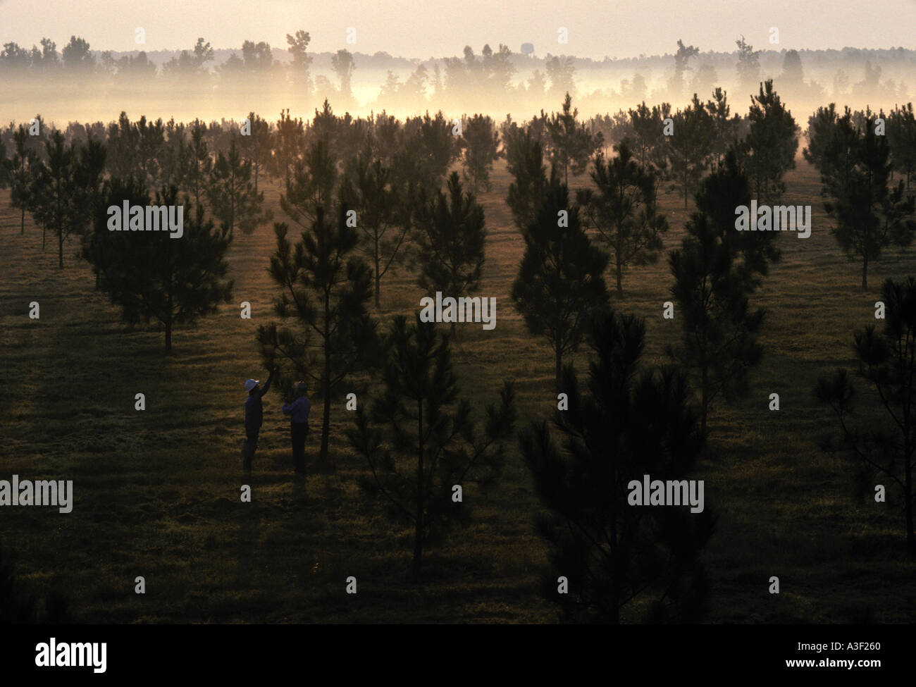 two foresters in Southern Pine plantation Arkansas Stock Photo Alamy