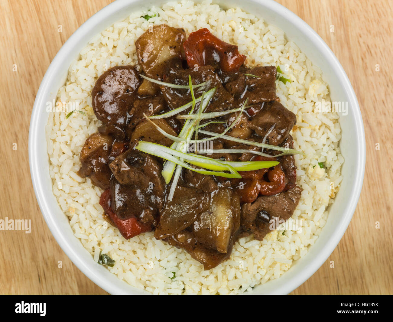 Chinese Style Beef and Black Bean Stir Fry With Egg Fried Rice Stock