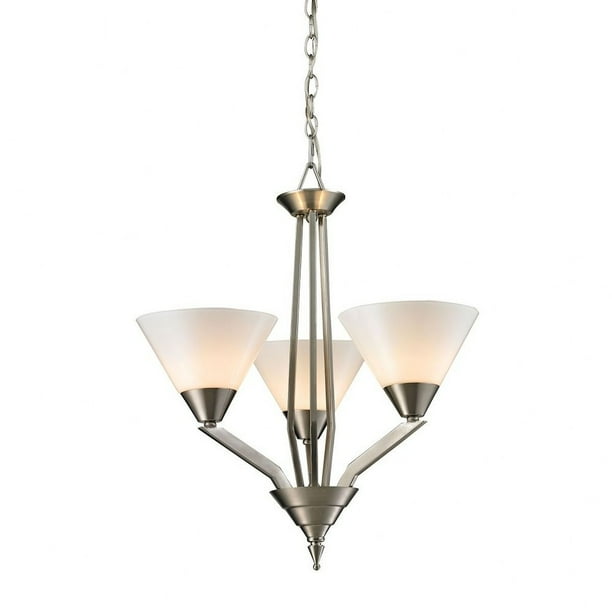 3Light White Glass Shade Chandelier in Brushed Nickel Finish Retro White Glass Shades For Chandelier check out our white glass lamp shade selection for the very best in unique or custom, handmade pieces from our home. choose from a variety of glass lamp shade treatments, including crackle, frosted and prismatic, to get the exact design effect. check out our white glass chandelier shades selection for the very best in unique or custom,. White Glass Shades For Chandelier.