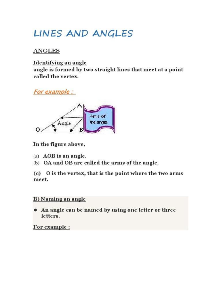 Types of Angles in Geometry Lines And Angles Pdf illustrate the concepts of point, line, plane, parallel lines and interesecting lines; in this chapter, you will study the properties of the angles formed when two lines intersect each other, and also the. These ideas form the building blocks of ‘plane geometry’, and will help us in. Goal 2 identify angles formed by. download the pdf file. Lines And Angles Pdf.