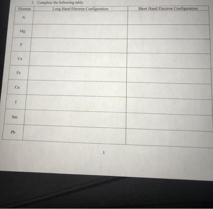 Solved 3. Complete the following table Element Long Hand