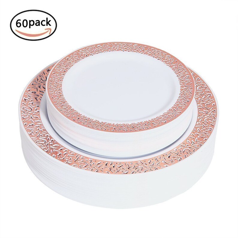60 Pieces Rose Gold Plates Plastic Lace Plates Party Premium Etsy