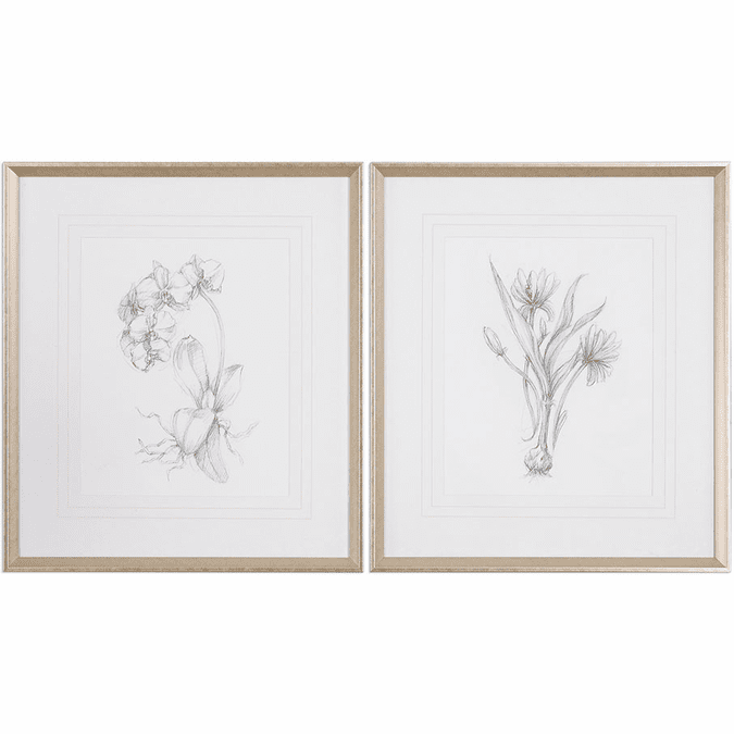 Uttermost 33649 Botanical Sketches Modern Silver Leaf Wall Decor UTT33649