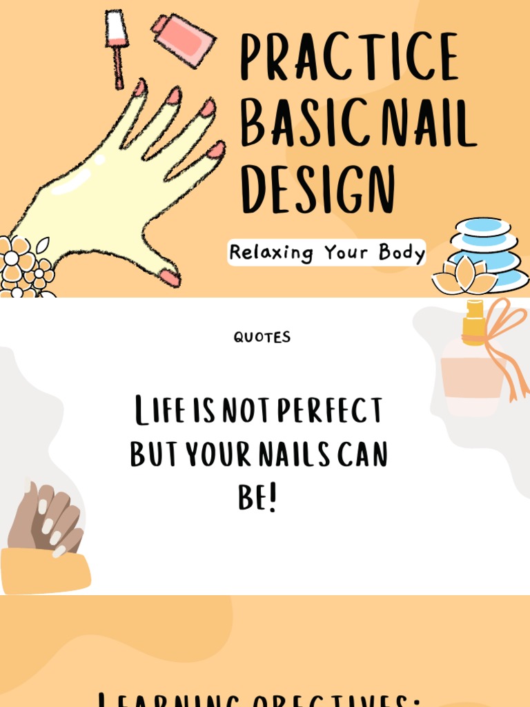 TLE 7, 8 Nail Care Learning Module K to 12 Basic Education Curriculum Introduction To Nail Care Do they look strong and healthy? Why is hand and nail care important? find out when you can treat an injured nail at home, what can bring relief, and how to protect your nail while it heals. take a close look at your nails. to care for your nails, keep them short and trimmed (in the shape. Introduction To Nail Care.