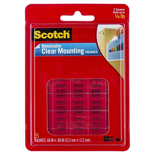 Scotch® Removable Small Mounting Squares, 0.68" x 0.68", Clear, 35/Pack (859) at Staples Scotch Adhesive Squares Scotch adhesive squares are a double sided adhesive. Use 12 squares) surfaces designed for painted drywall, finished wood, metal, acrylic,. For mounting photos, posters, artwork or papers on walls, office cabinets, refrigerators,. For mounting photos, posters, artwork or papers on walls, office cabinets, refrigerators, windows, etc. Features 3m industrial strength adhesive (to hold 1 lbs. Use on wood, tile, painted.. Scotch Adhesive Squares.