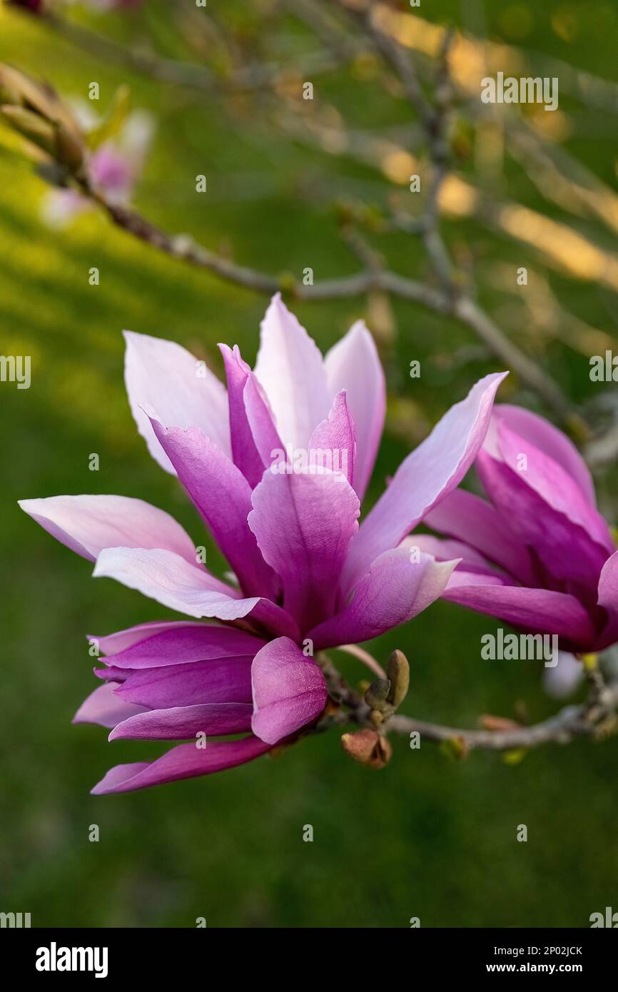 Magnolia liliiflora Nigra pink flower in the garden design Stock Photo