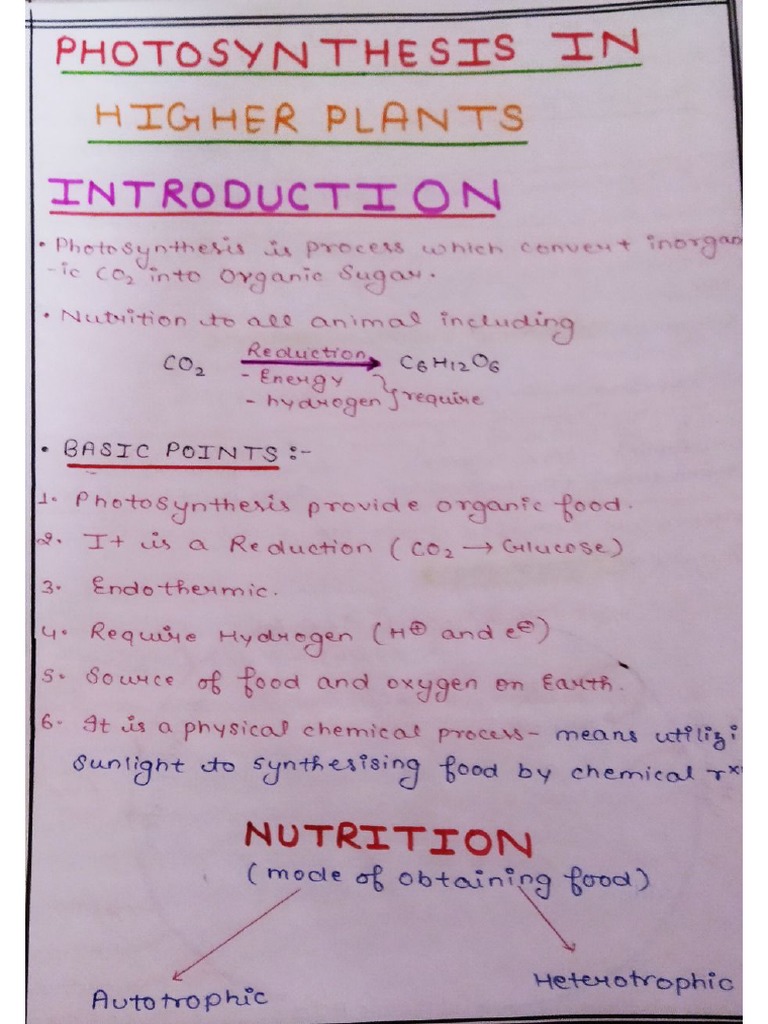 Photosynthesis in Higher Plants Short Notes SN PDF