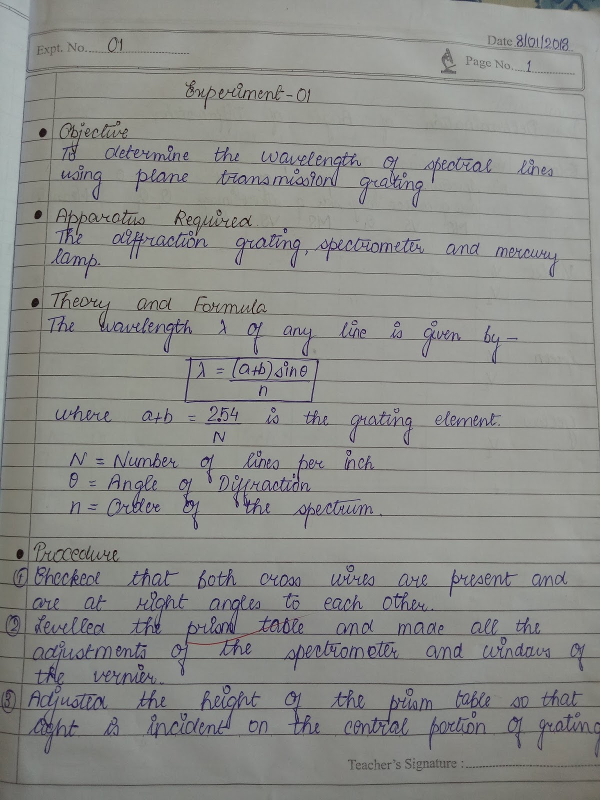 Optics Plane Transmission Grating experiment with readings