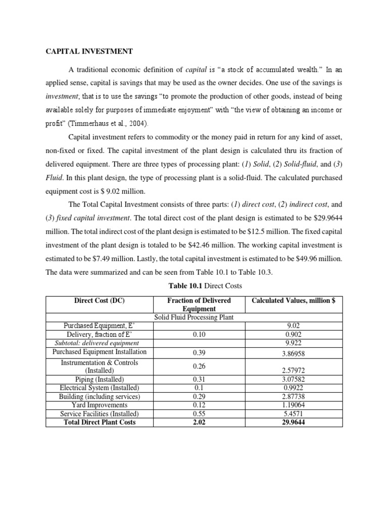 Analyzing Capital Investments, Operating Costs, and Profitability for a