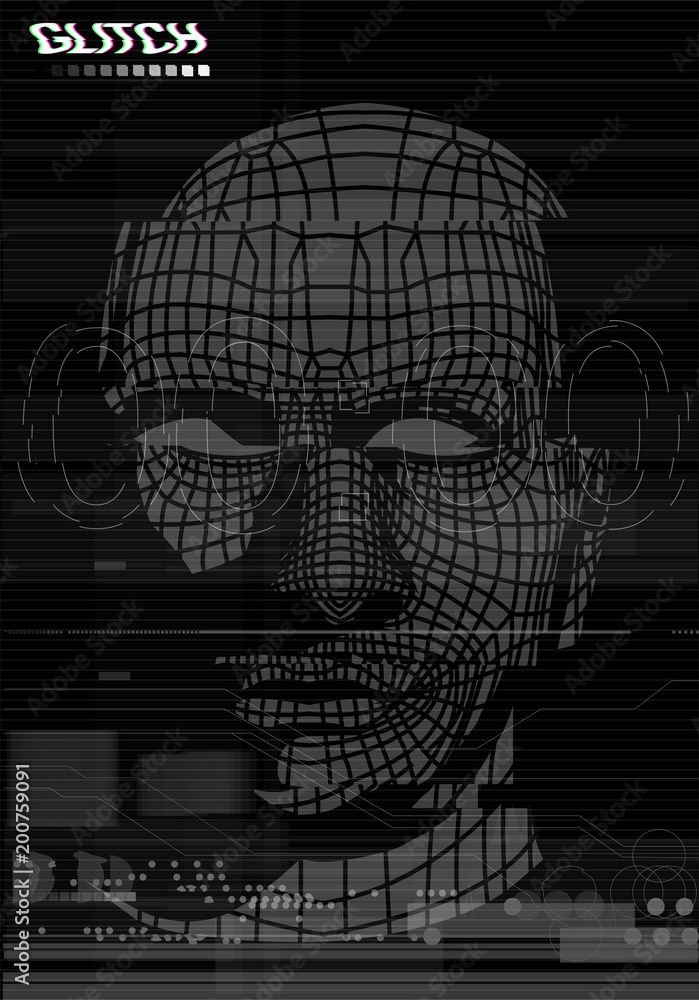 Vektorová grafika „Glitch Screen. Head, face of a man in the style of