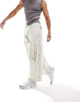 ASOS DESIGN cargo pants in crinkle nylon with strapping details in gray