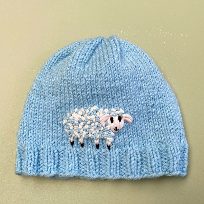 Newborn Baby Boy Blue Hat With Embroidered Lamb Custom Knit Etsy