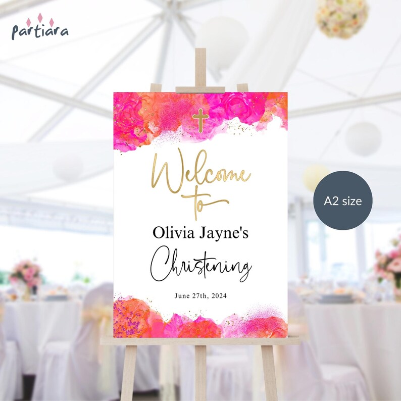 Pink Orange Sign, Girls Birthday Party Board Printable