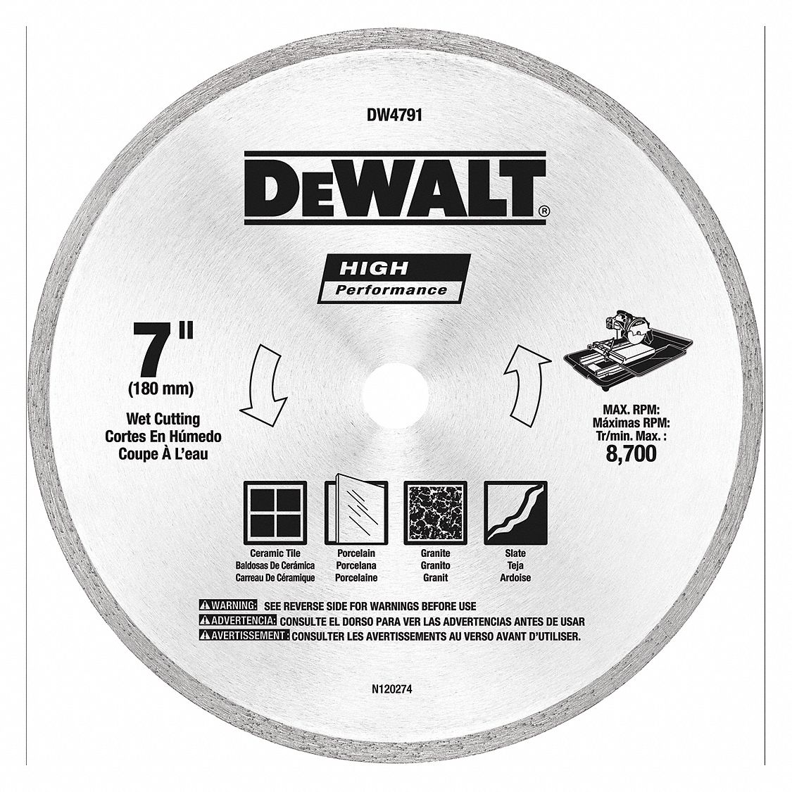 DEWALT, 7 in Blade Dia., 5/8 in Arbor Size, Diamond Saw Blade 53DR63