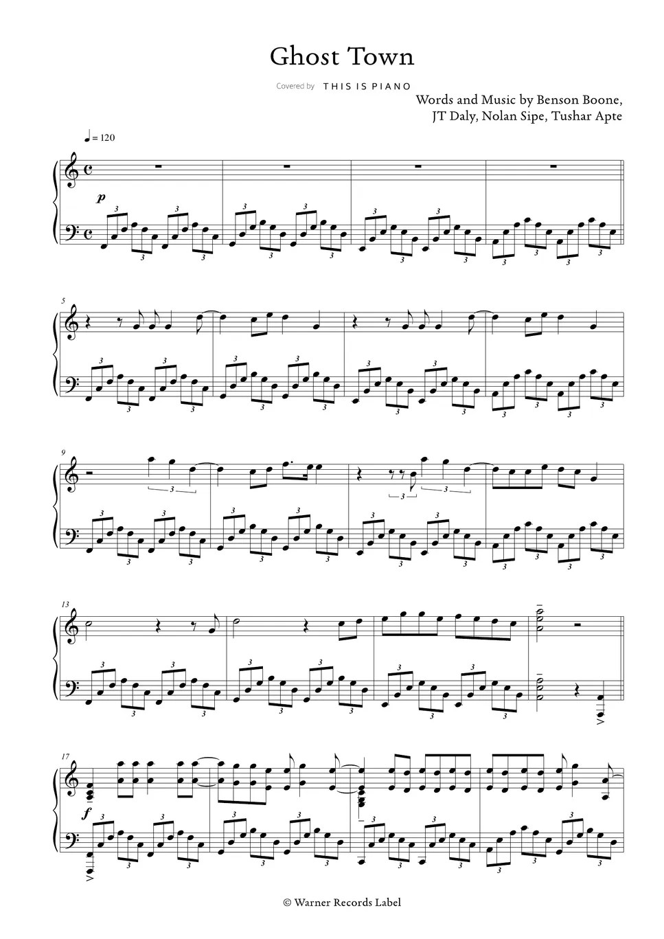 Benson Boone Ghost Town Sheet by THIS IS PIANO