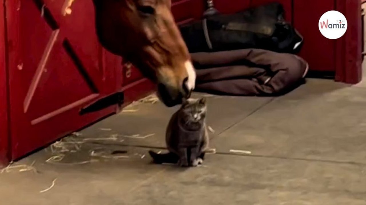 Horse nibbles the cat's head The feline's reaction is unexpected (video)index video Dailymotion