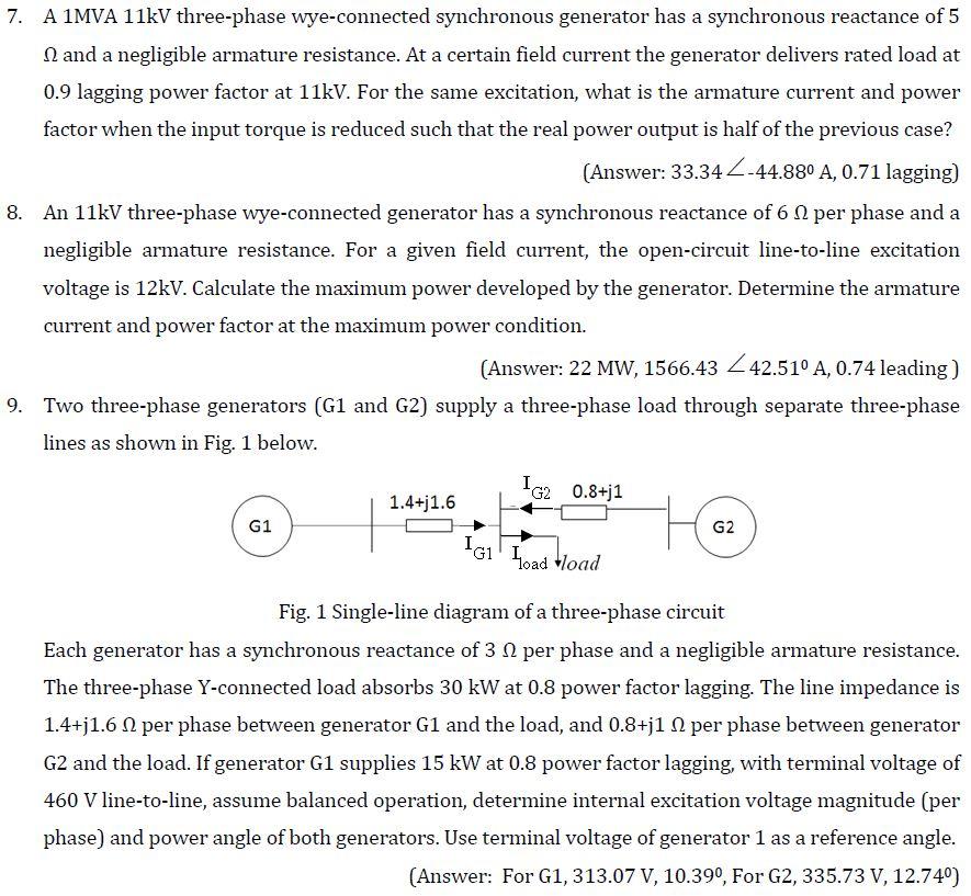 Solved 7. A 1MVA 11kV threephase wyeconnected synchronous