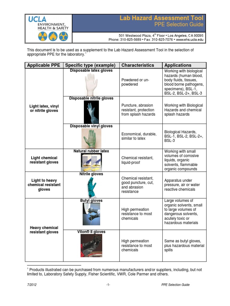 Lab Hazard Assessment Tool Applicable PPE Specific Type (Example