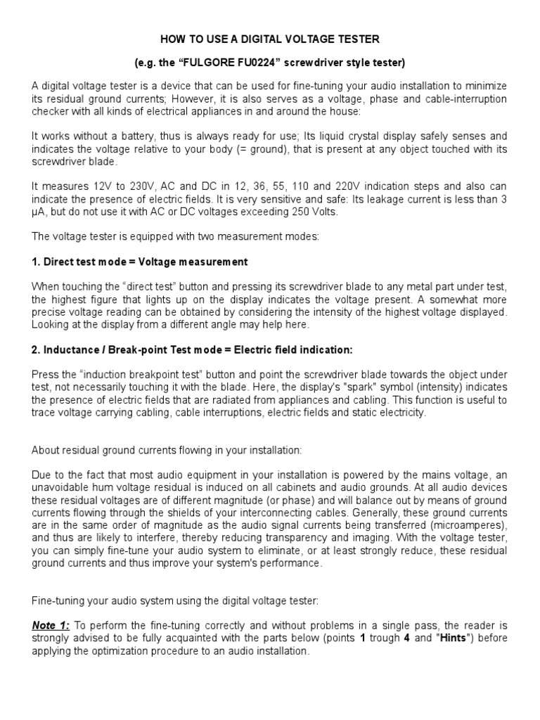 How To Use A Digital Voltage Tester PDF Mains Electricity Voltage