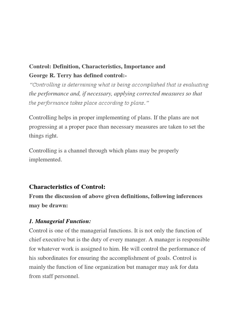 Control Definition, Characteristics, Importance and R. Terry