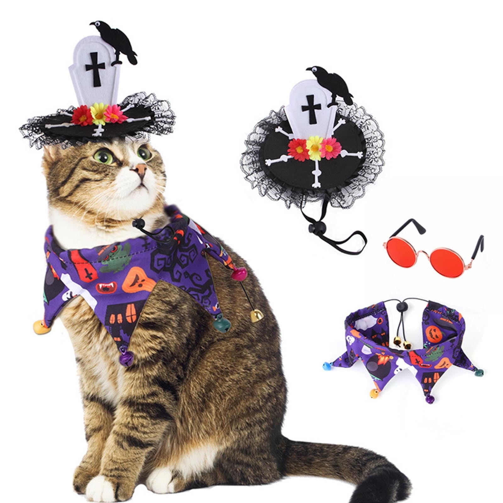Pet Transformation Dressup Dog Cat Adjustable Scarf Glasses Pumpkin