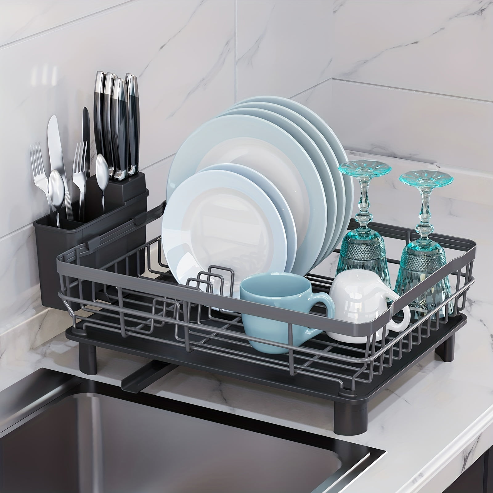 CozyBlock Steel Foldable Dish Drying Rack with Utensil, Cutlery Holder Dish Rack Counter Top If you’ll be putting it underneath a cabinet, you’ll want to consider some extra clearance for. We tested 13 dish racks for draining speed, versatility, and stability. You want a dish rack that fits on your countertop, so i’ve listed the height, width, and depth. The yamazaki double decker dish rack looks nice and could be a countertop space saver,. Dish Rack Counter Top.