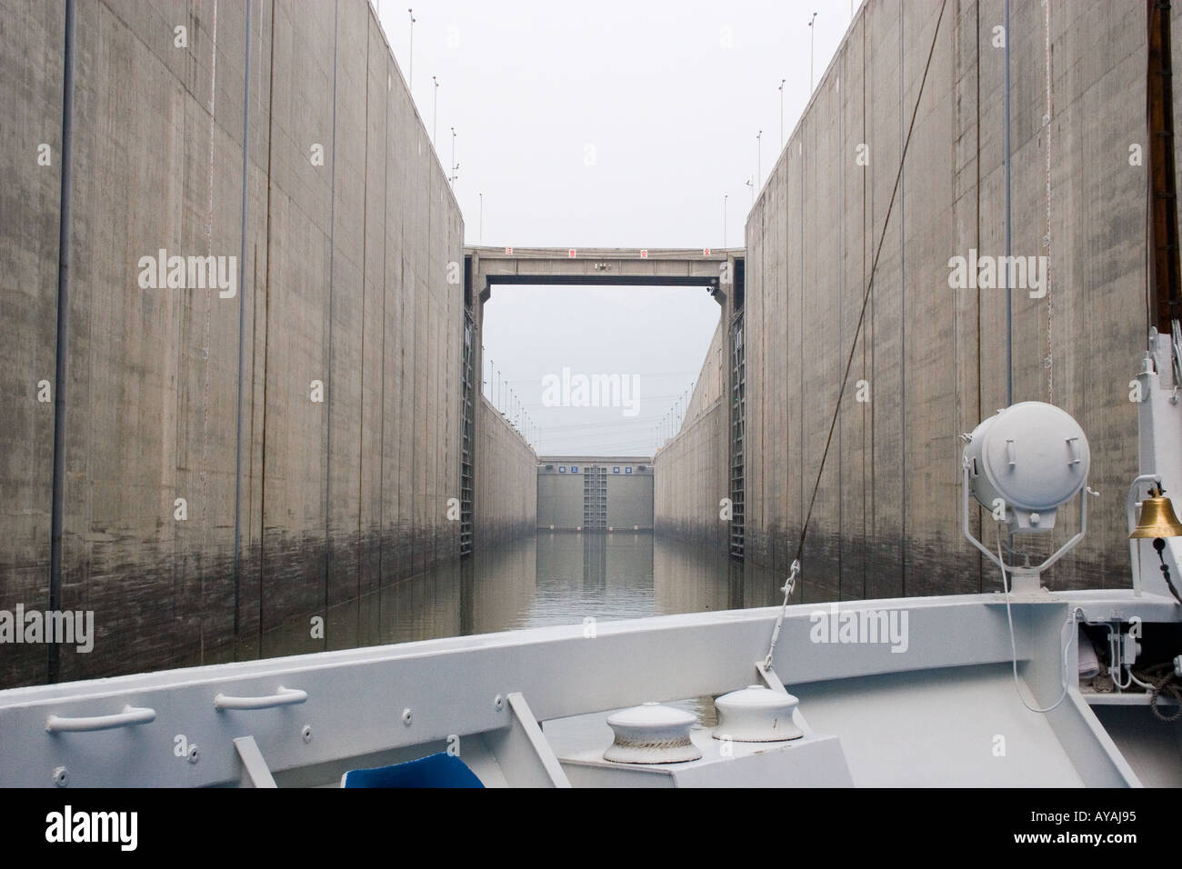 Cruise ship entering the first ship lock on the Yangtze river in China