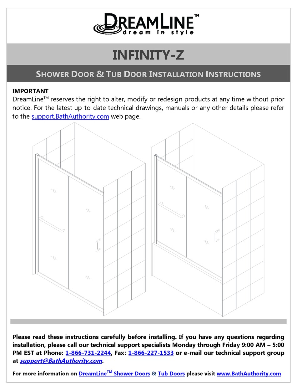 DreamLine InfinityZ 4448 in. W x 72 in. H SemiFrameless Sliding Dreamline Infinity Z Shower Door Installation Video Dreamline's mission is to deliver value and excellence across the bath and shower marketplace. Dreamline.com for the latest technical drawings, installation manuals, warranty information or additional product details. An experienced dreamline technician is here to offer assistance! Browse model sizes and learn more here: Please follow the same sequence of installation steps for the tub door installation. Need a question. Dreamline Infinity Z Shower Door Installation Video.