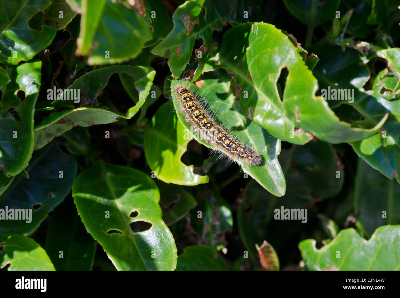 Tent caterpillar Malacosoma eating its way through the leaves of a