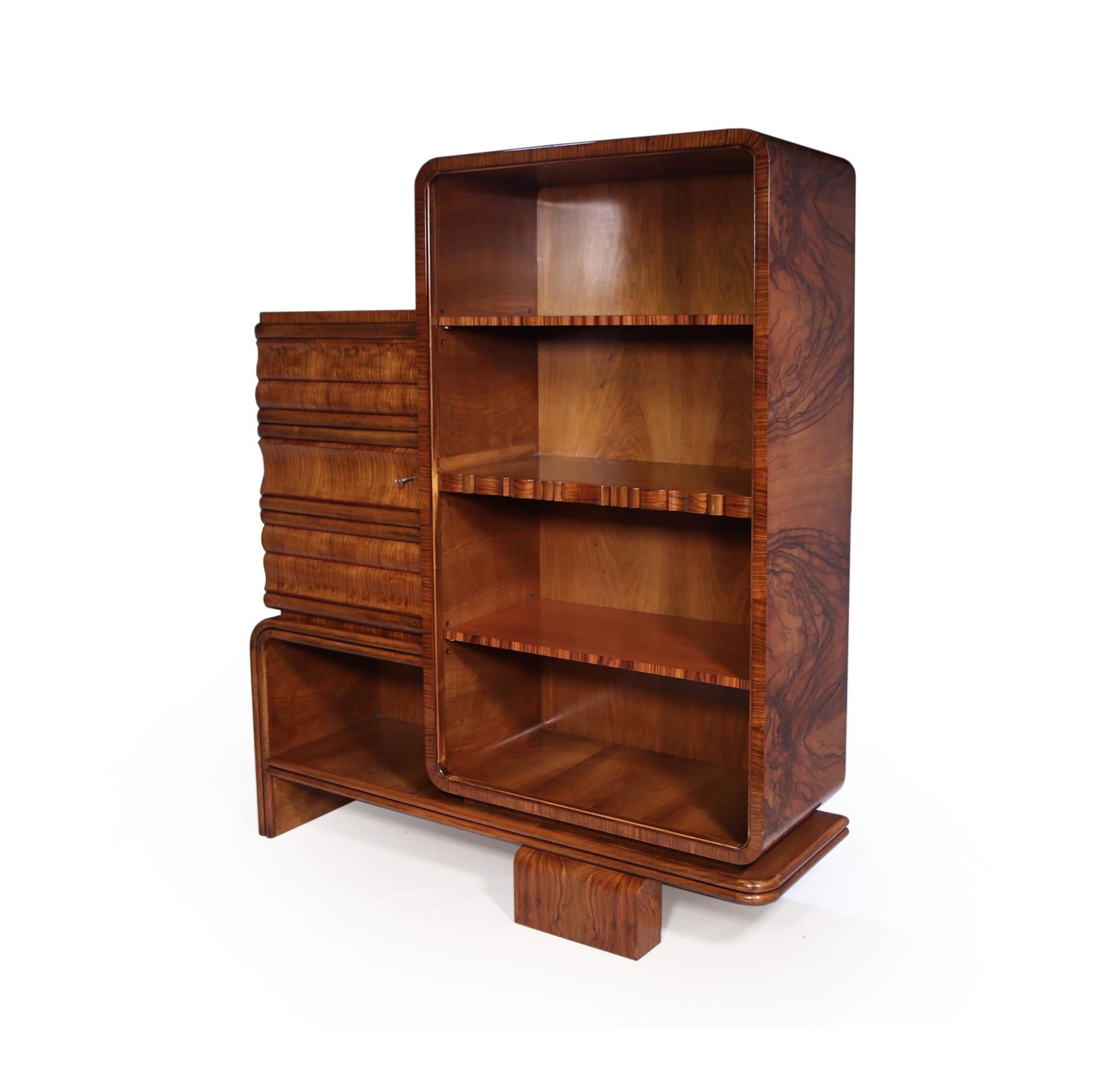 Art Deco Walnut Bookcase with Bureau Section c.1930 Art Deco Walnut Bookcase Original art deco walnut bookcase with wooden shelves and glass sliding doors. Parcourez notre sélection de art déco walnut bookcase : A very unusual open bookcase with adjustable top and lower shelf to the right and cupboard to the left with ornately shaped door. Vous y trouverez les meilleures pièces uniques ou personnalisées de nos boutiques. Shop our walnut art. Art Deco Walnut Bookcase.