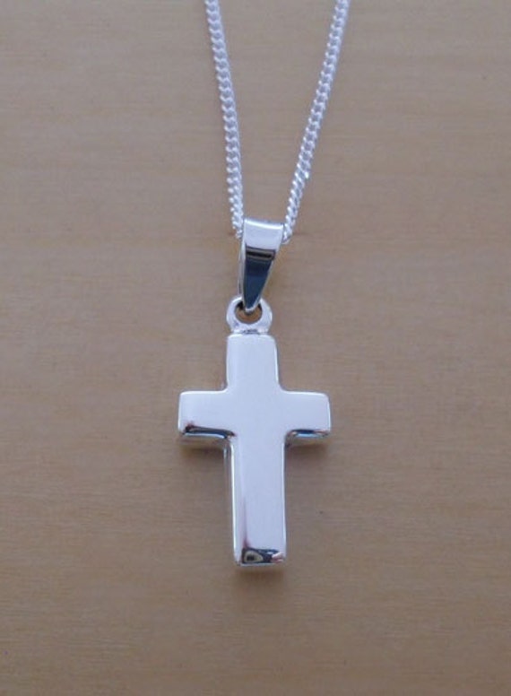 925 Sterling Silver Thick Small Latin Cross Pendant on Curb
