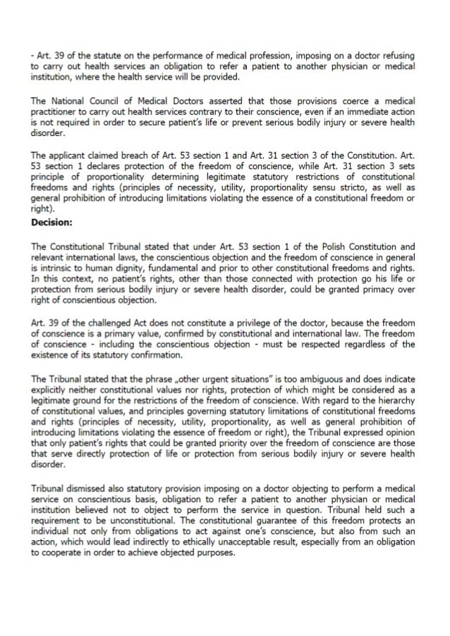 Polish Tribunal on Medical Doctors Conscientious Objections