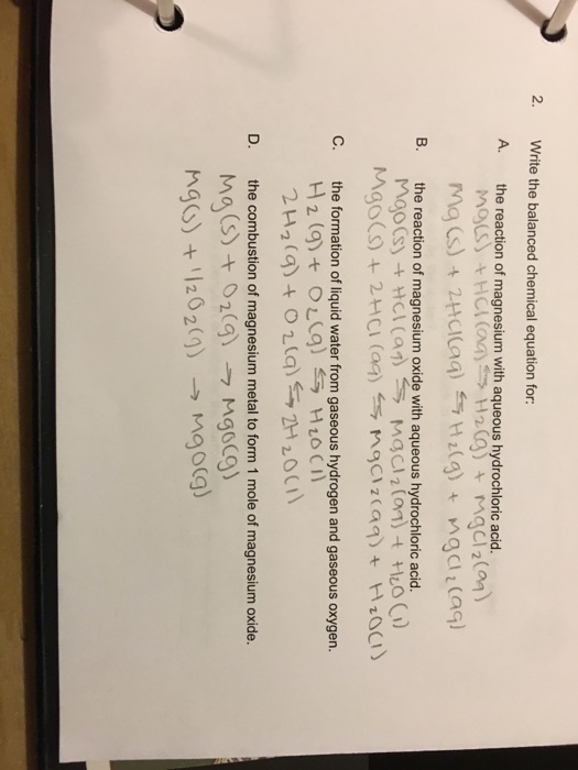 Solved 2. Write the balanced chemical equation for A. the