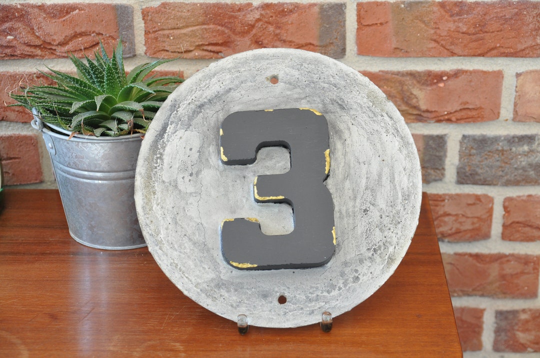 Concrete House Number Sign No.3 / Black / Gray / Gold Etsy Cement House Numbers Additional colors are available online. Check out our concrete house numbers selection for the very best in unique or custom, handmade pieces from our address signs shops. Create these fun concrete address numbers to add a modern touch to your front yard.read more about this. Concrete or stone house numbers are typically installed in a front garden where the bulky. Cement House Numbers.