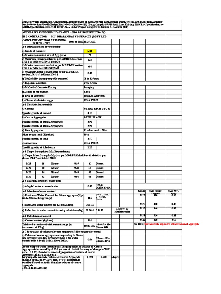 Mix Design Calculations DCIPL M40. PDF Concrete Construction