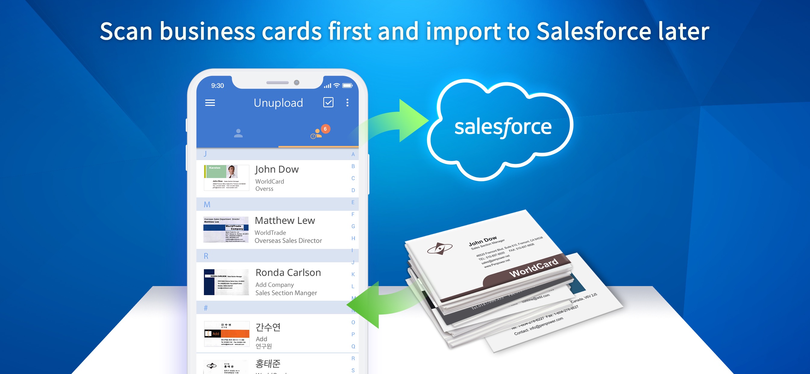 scan business cards first and import to salesforce later