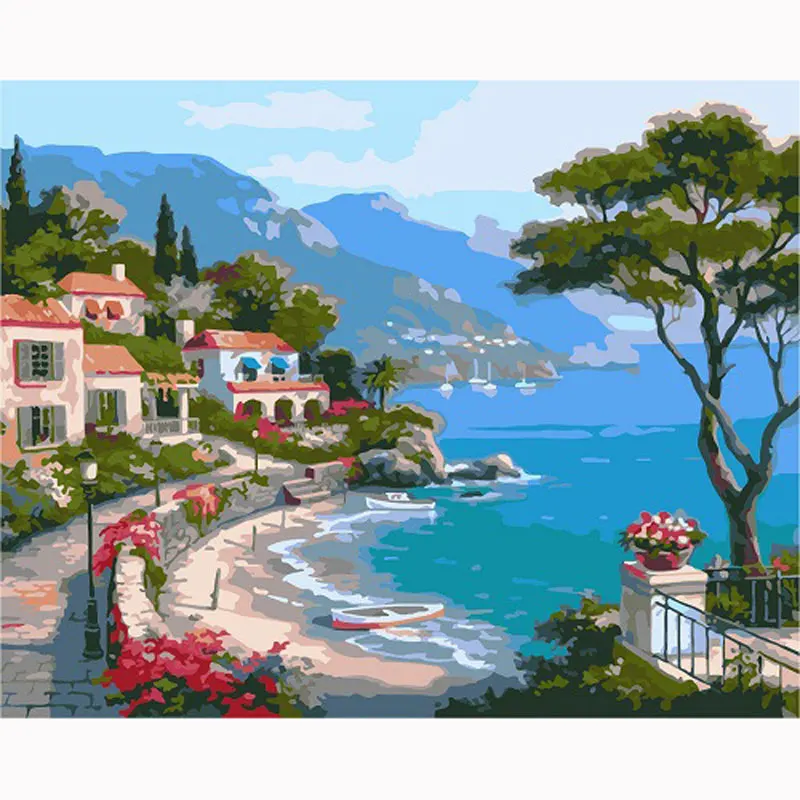 RIHE Seaside City Diy Painting By Numbers Abstract Sea Boat Oil Seaside Painting Diy #beachpainting#seascapepainting#oceanpaintingeasy seascape beach painting for beginners | ocean acrylic. In this exciting video, we’re exploring the beauty of diy. Add a small amount of teal paint the same way underneath the white. Welcome to baseline art and crafts! Colorful abstract ocean painting where you see all the brush strokes. I hope you find some inspiration in this updated collection of. Seaside Painting Diy.