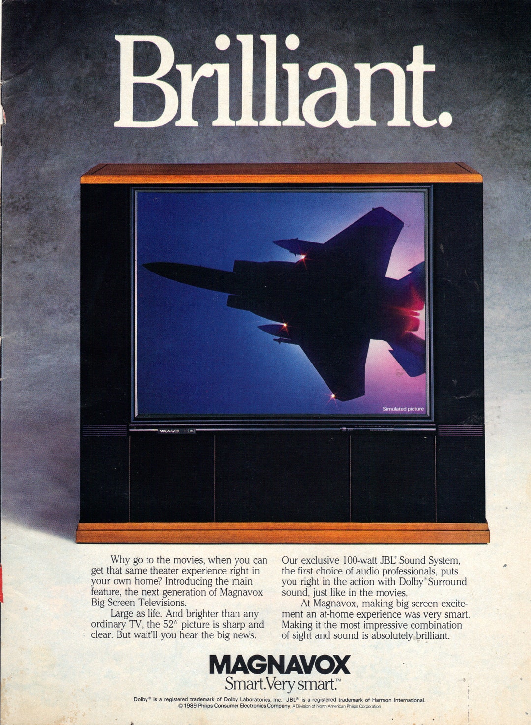 Vintage 1989 Print Ad for Magnavox Big Screen Televisions Etsy