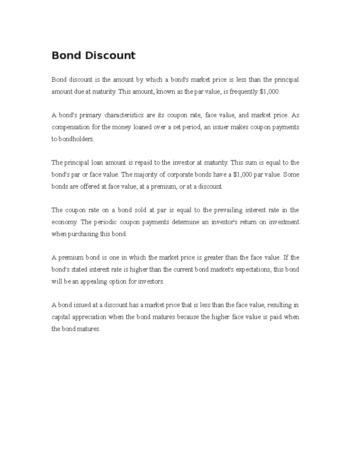 Accounting Summary on Bond Discount Bond Discount Bond discount is