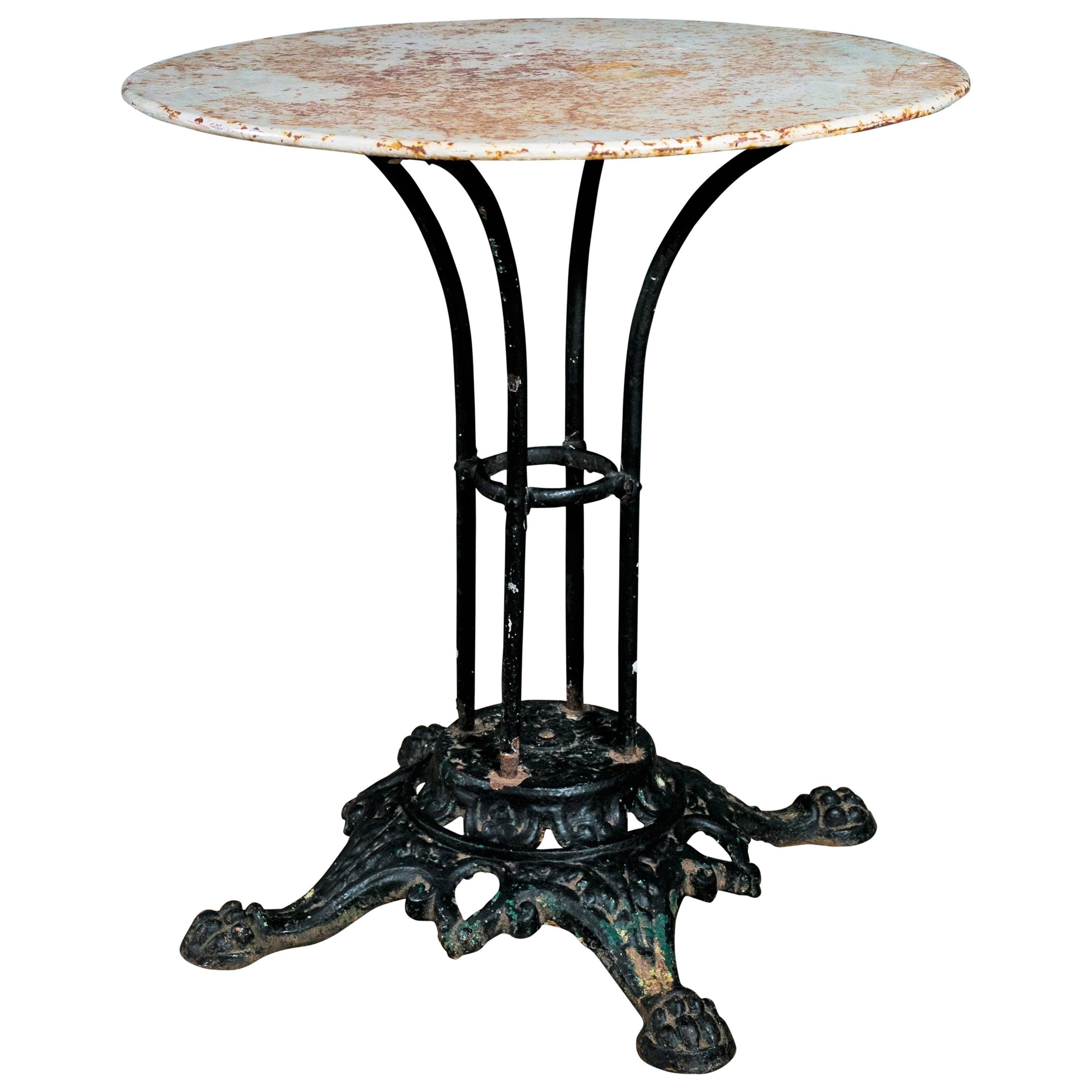 French Iron Bistro Table with Painted Top and Paw Foot Cast Iron Base