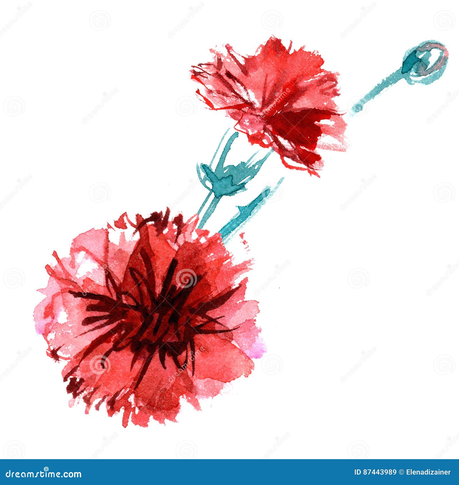 Watercolor Hand Painted Carnations Isolated Stock Illustration