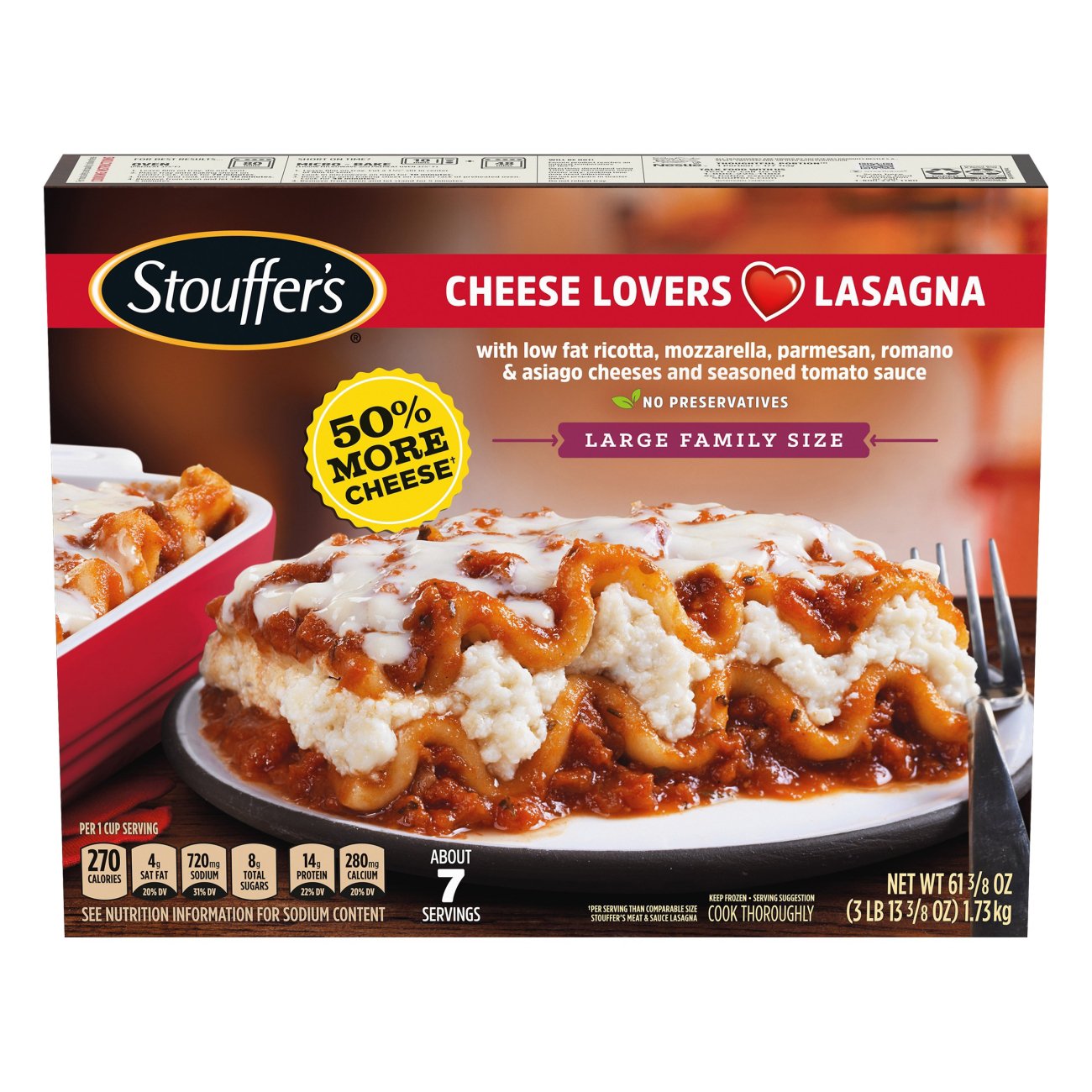 Stouffer's Cheese Lovers Lasagna Frozen Meal, NET WT 10 3/4 OZ Kroger Stouffer's Cheese Lasagna Indulge in a delicious homemade meal in no time! the stouffer's family size five cheese lasagna isn't a perfect lasagna, by any means, but it's still pretty tasty. our stouffer's® cheese lovers lasagna family size frozen meal features freshly made pasta with a blend of five cheeses. Read the full review at freezer meal frenzy. Find out about. Stouffer's Cheese Lasagna.