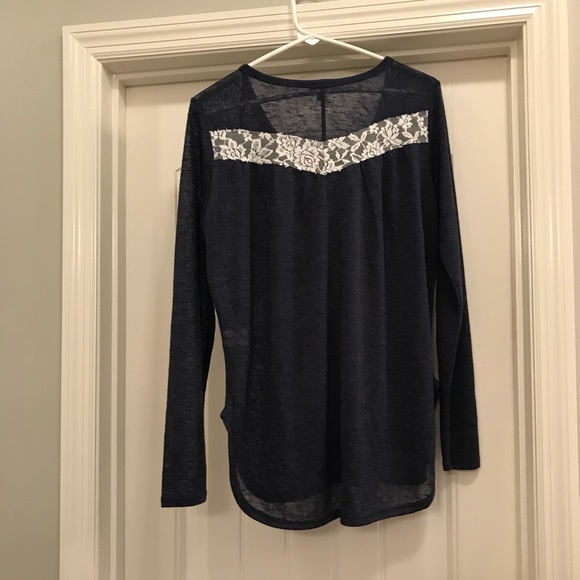 belk Sweaters Chip Pepper Navy And White Lace Sweatertop Poshmark