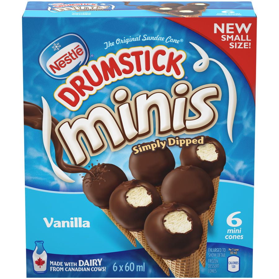 Drumstick Mini From original, mini drums, king size, and more, check out all drumstick® has to offer! The original sundae cone®, miniaturized! So let's give mini its moment. Shop for more cone ice cream available online at walmart.ca. Buy nestlé® drumstick® minis vanilla with chocolatey swirl frozen dessert cones from walmart canada. You always deserve a mini treat. Go ahead and share. Drumstick Mini.